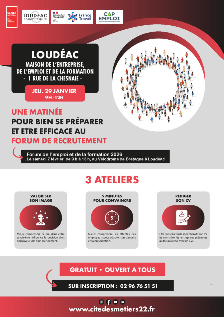 Profitez d’une matinée pour vous préparer à rencontrer des employeurs lors du Forum Emploi Formation du samedi 7 février à Loudéac !