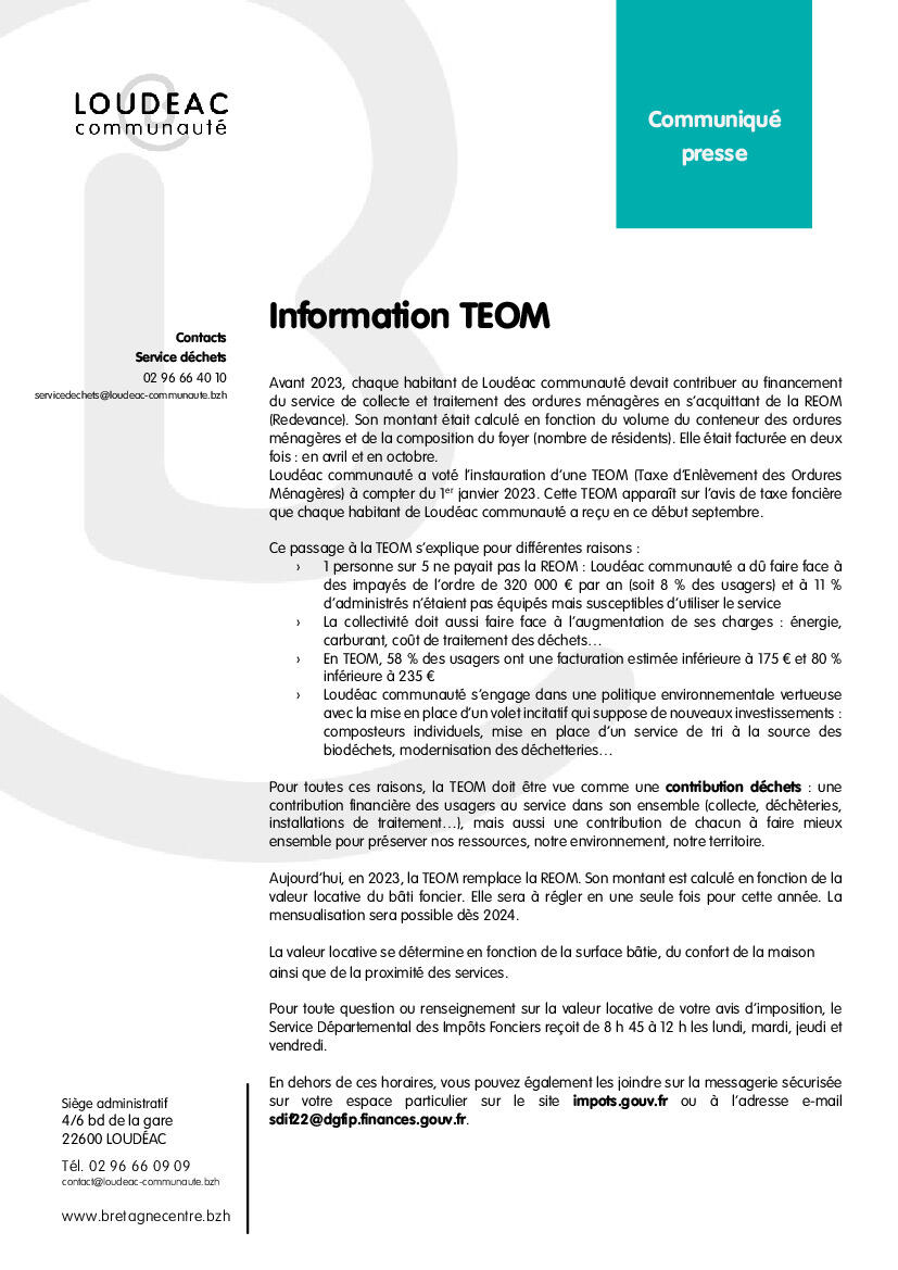 Communiqué de presse de Loudéac communauté du 20/09/2023