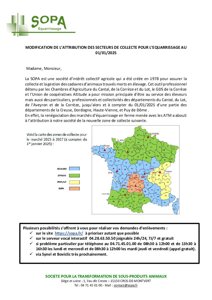Changement de prestataire équarrissage à partir du 02 01 25 1/6/25 Changement de prestataire équarrissage à partir du 02 janvier