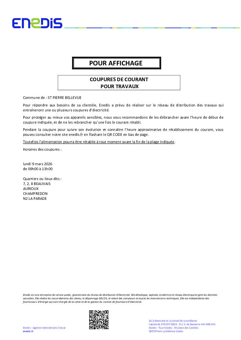 Coupure de courant - Saint Pierre Bellevue - lundi 09 mars