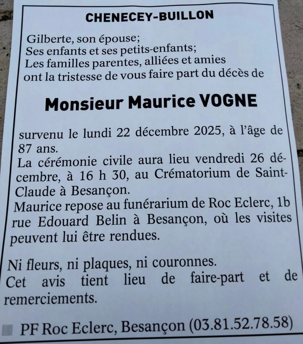 Décès Maurice Vogne