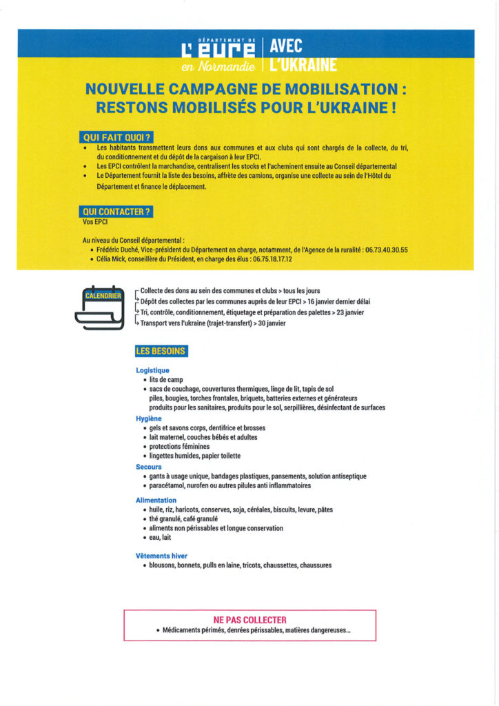 L’article Aide à l’Ukraine est apparu en premier sur Mairie de Beaumont Le Roger.
