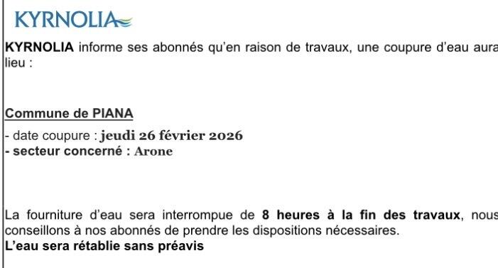 Coupure d’eau Arone