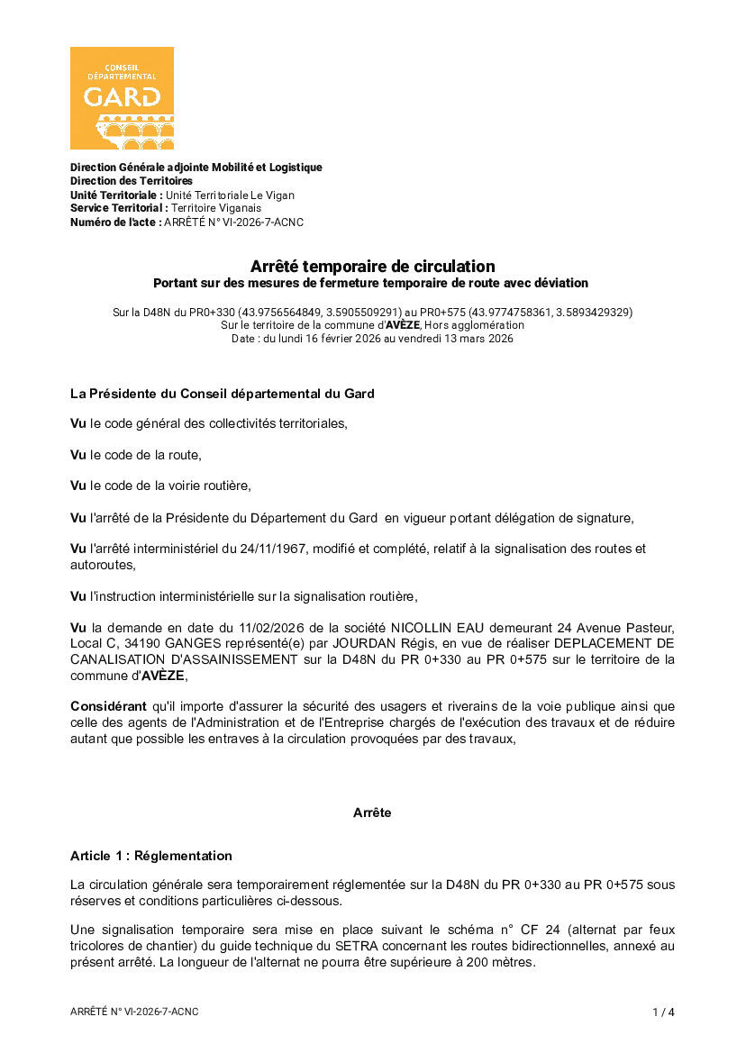 📍Nous vous informons que dans le cadre des travaux urgents sur la RD 48 N (réparation conduite assainissement sur la zone effondrée)