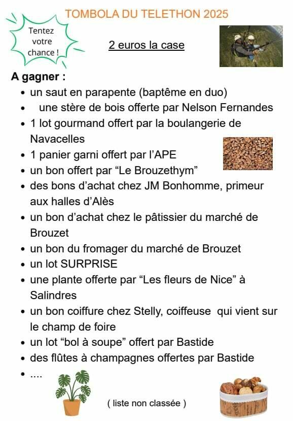 Venez tenter votre chance à la tombola, des superbes lots vous attendent!