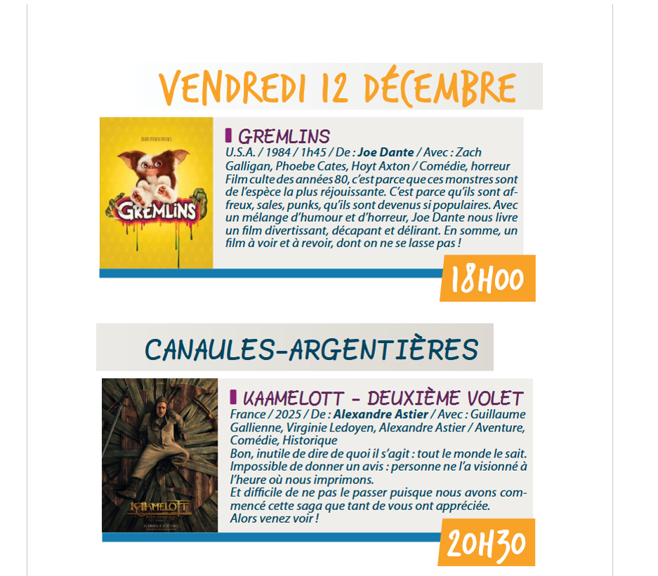 cinema à Canaules le 12 décembre 2025