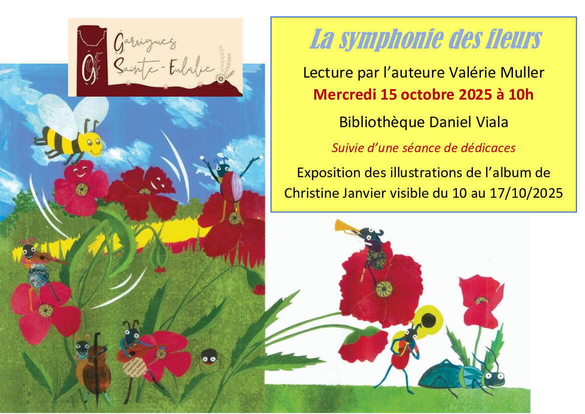 Valérie Muller, conteuse et auteure d'albums et romans fantasy, a le plaisir de venir vous présenter et vous conter son dernier album « La symphonie des fleurs" le mercredi 15/10/2025 à 10h.