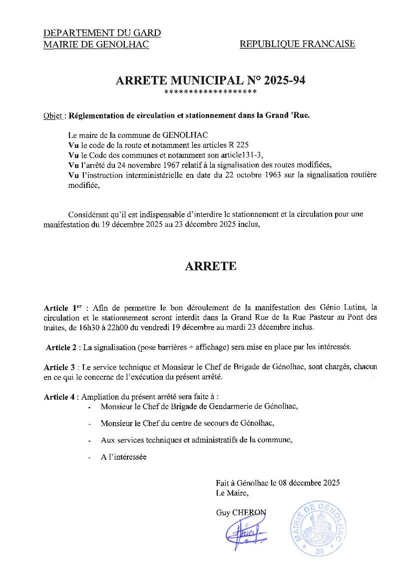 Arrêté municipal - intersection formée par la RD906 / RD175