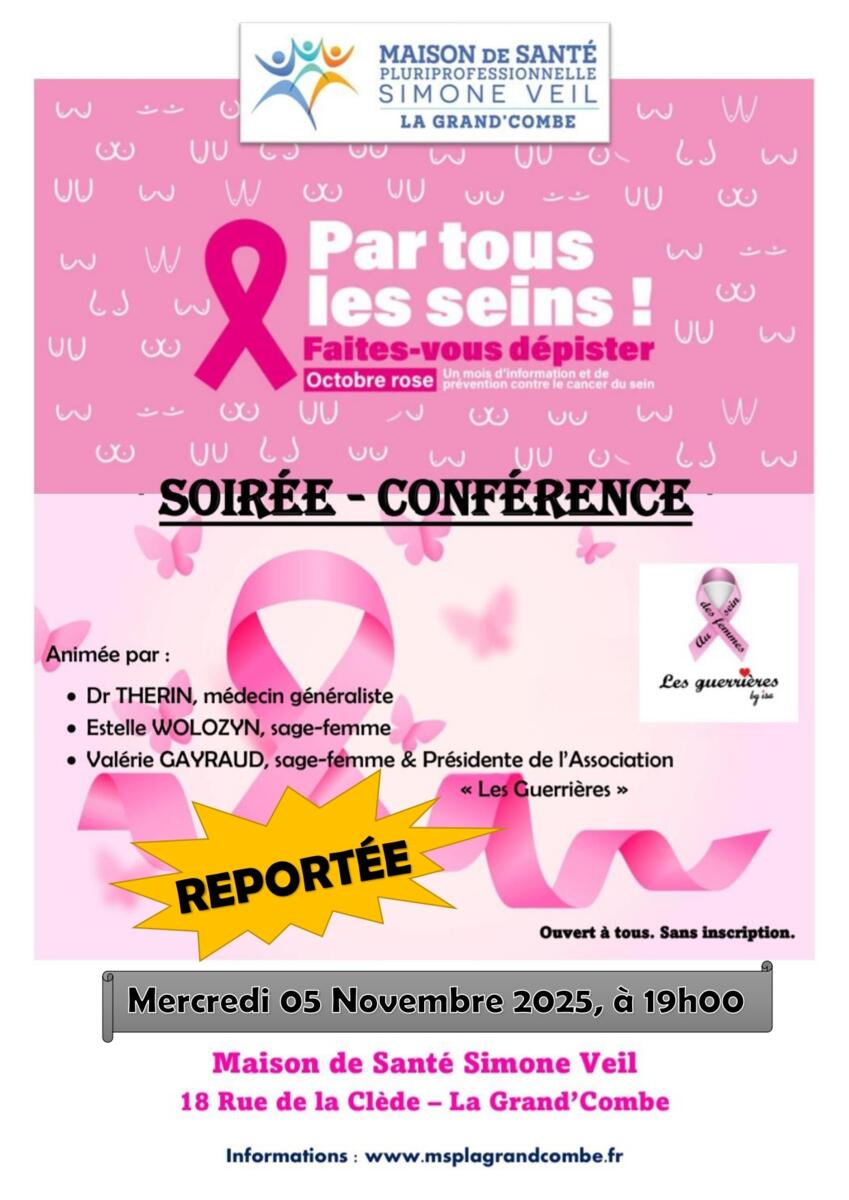 MAISON DE SANTE : REPORT DE SOIRÉE-CONFÉRENCE "OCTOBRE ROSE"