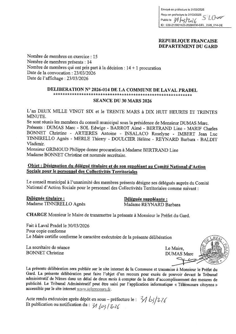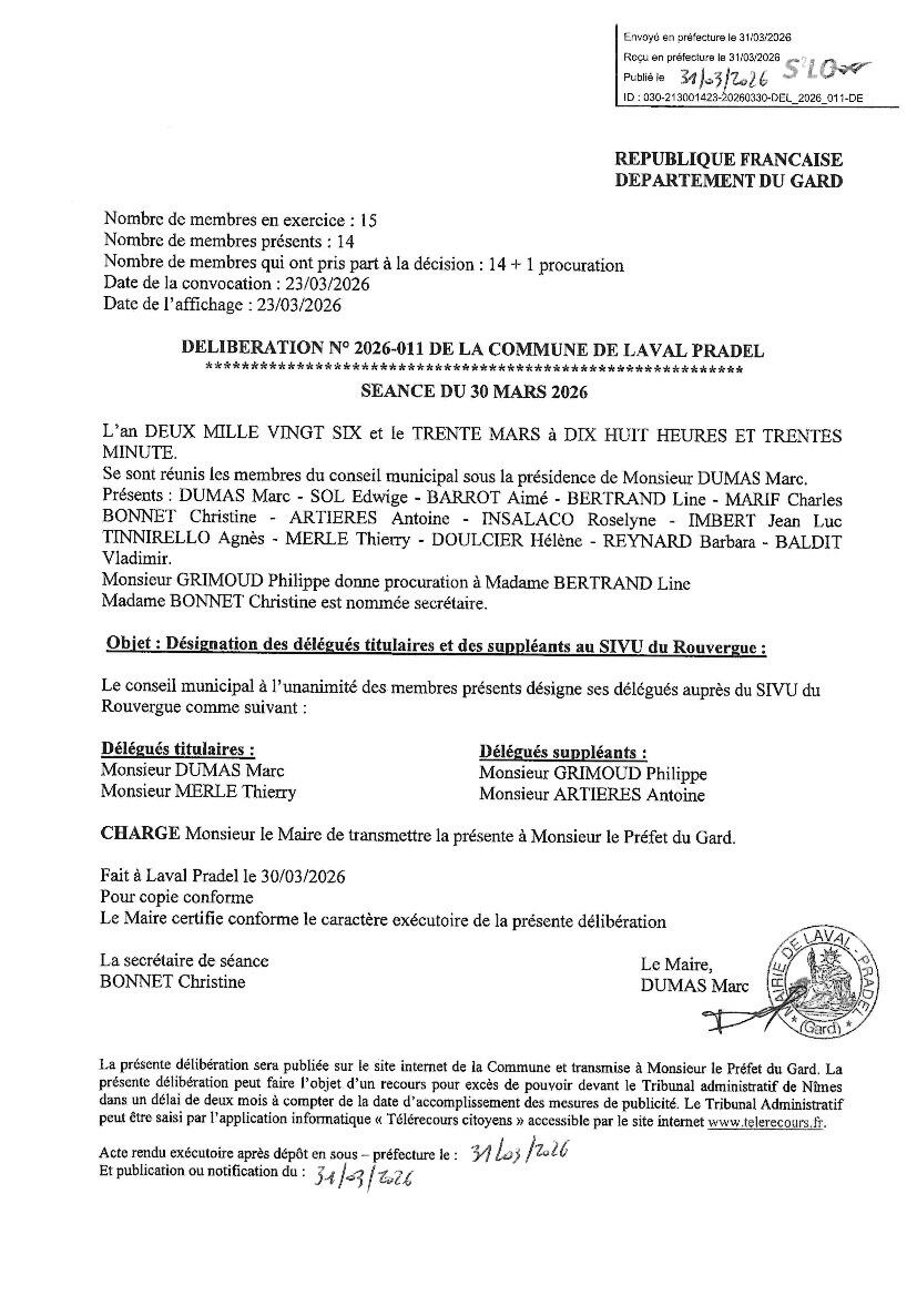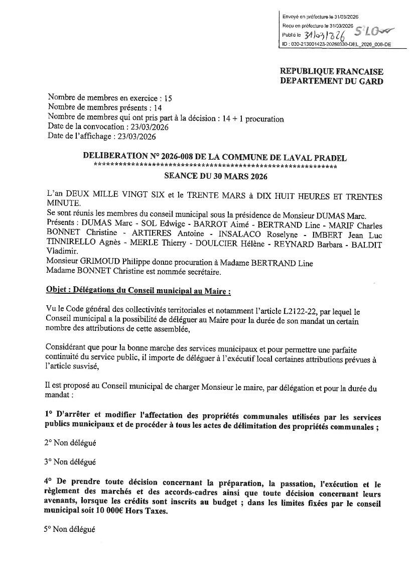 Délibérations Du Conseil Municipal 02/04/2026 Veuillez trouver les délibérations correspondantes au relevé de décisions de notre message précédent.