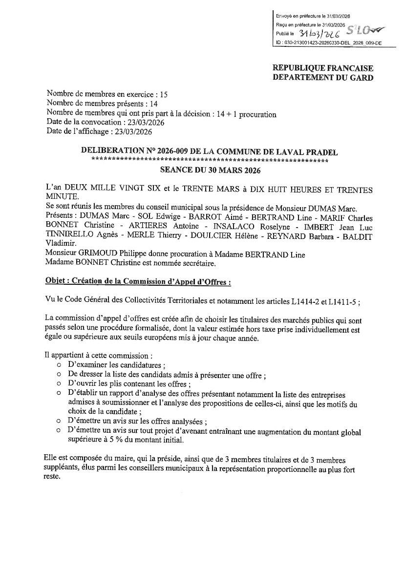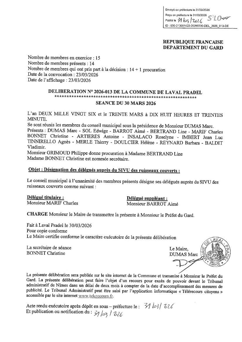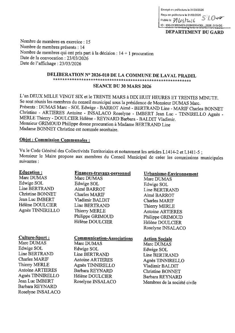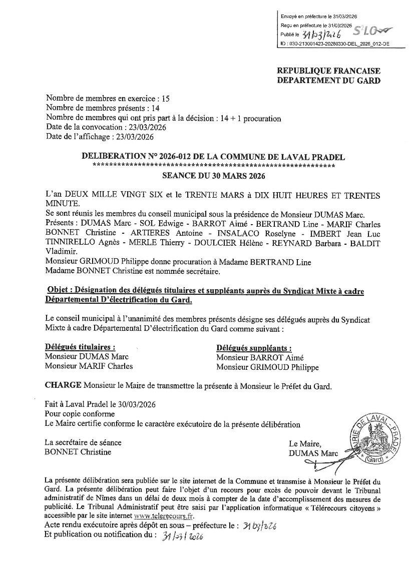 Délibérations Du Conseil Municipal 02/04/2026 Veuillez trouver les délibérations correspondantes au relevé de décisions de notre message précédent.