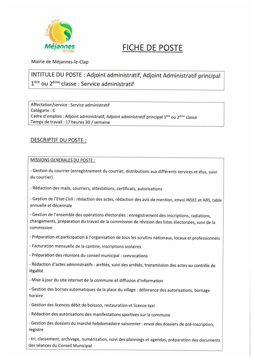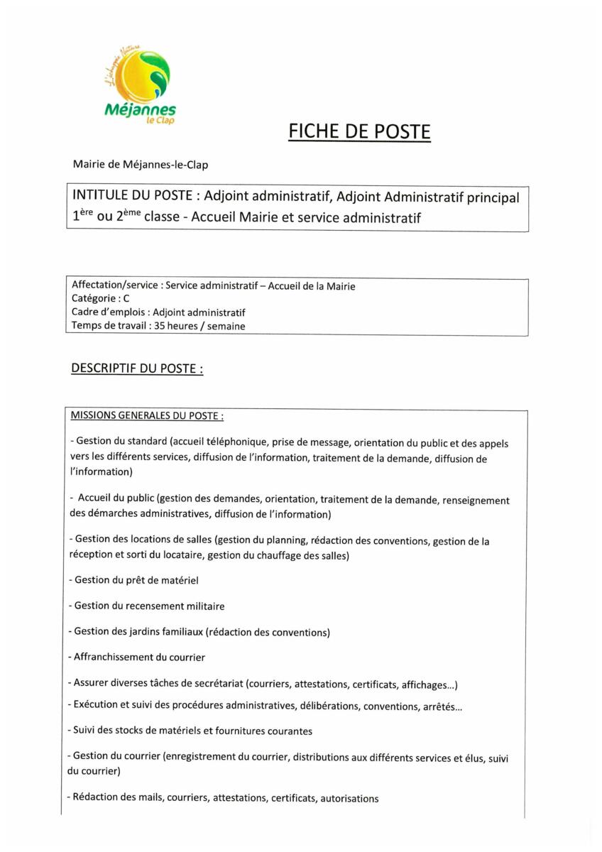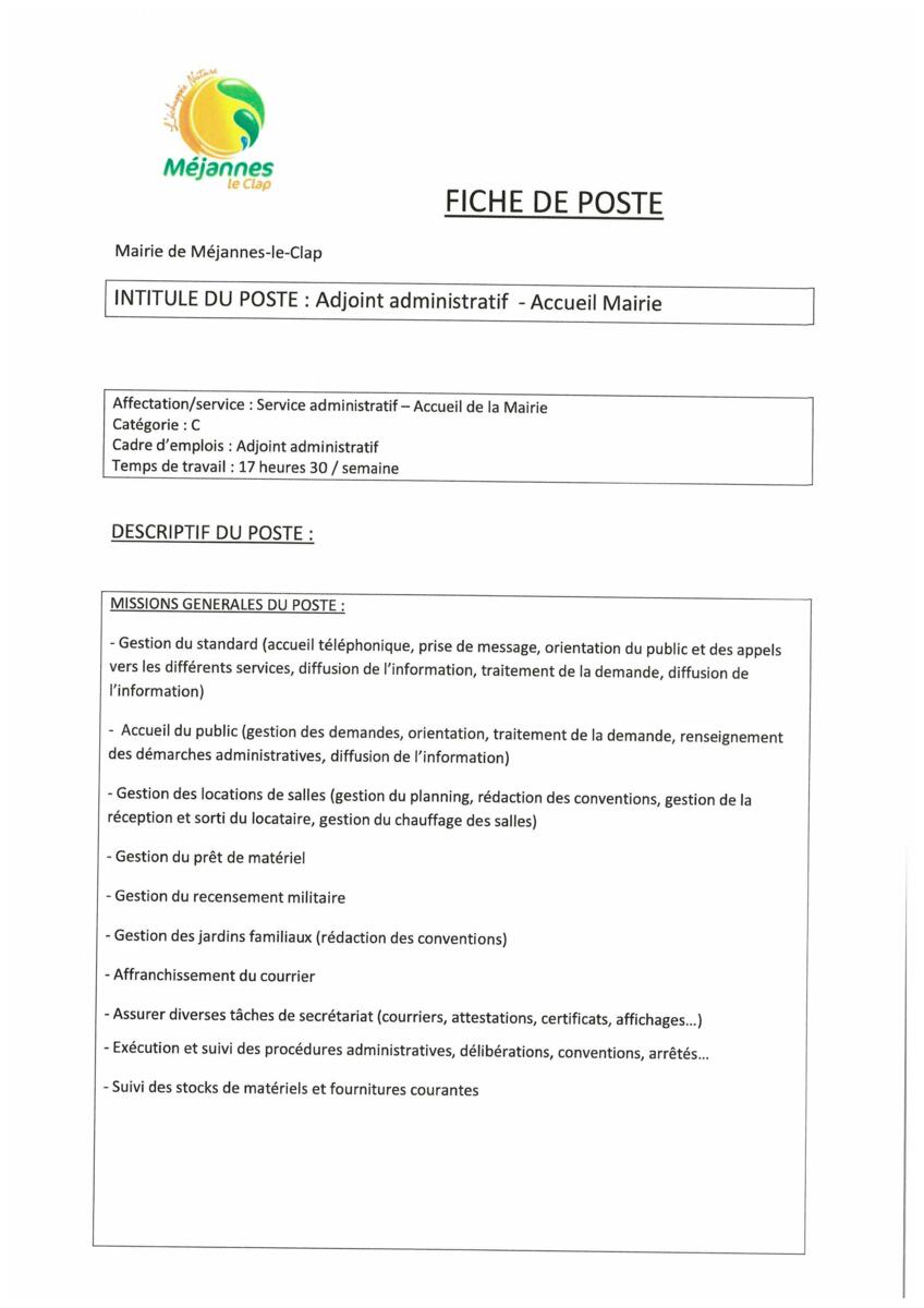 Offre d'emploi Accueil Mairie