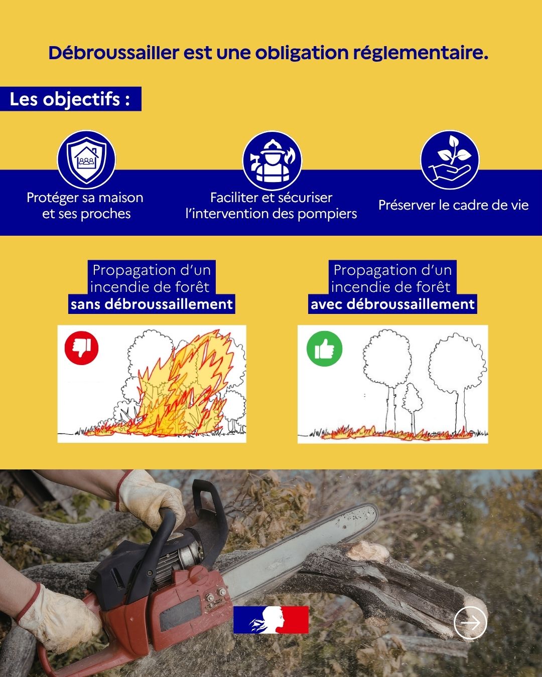 ➡️ Pour rappel, cette obligation réglementaire oblige les propriétaires de terrains à entretenir la végétation qui entourent leur propriété (50 mètres autour de chez vous).