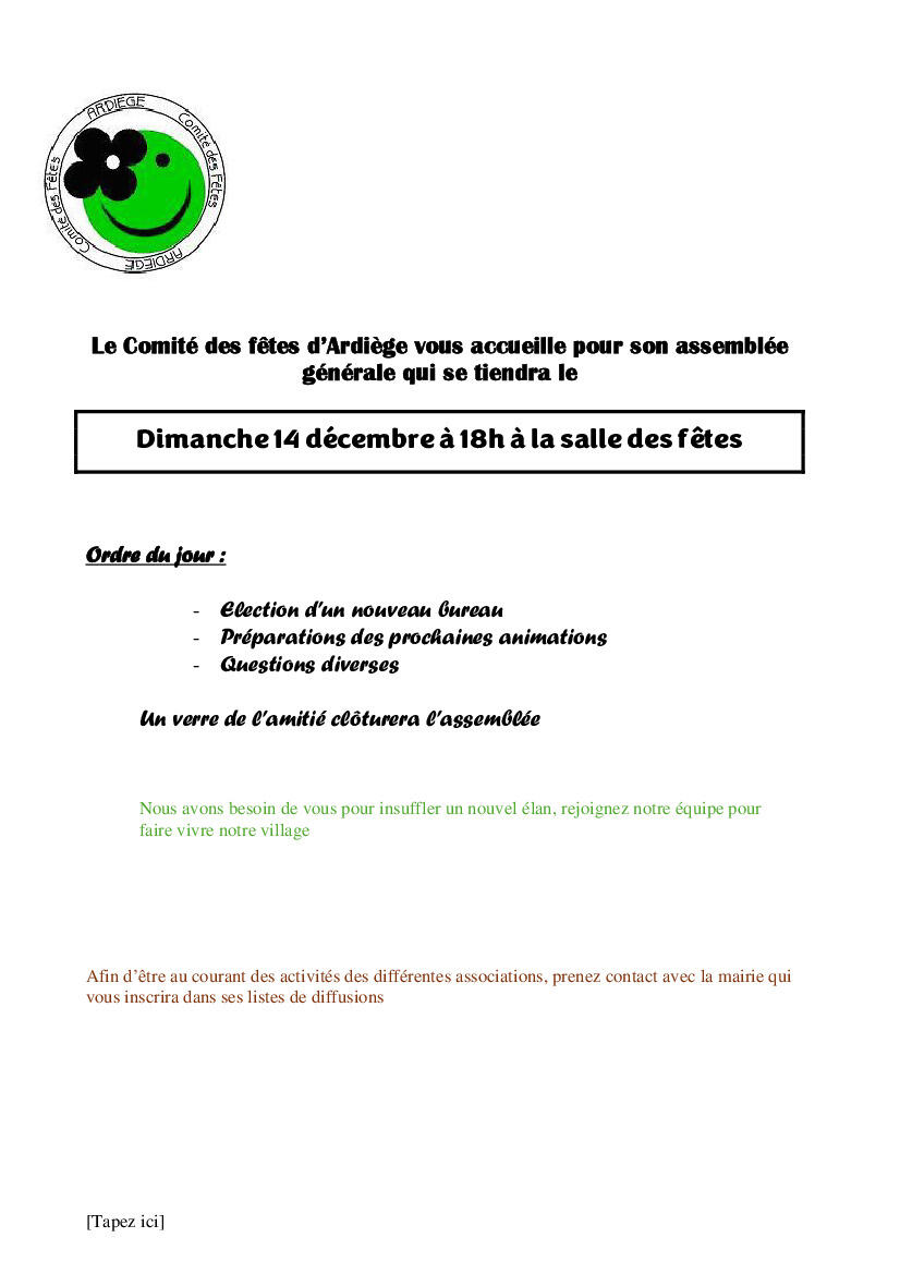 AG COMITE DES FETES - 14.12.2025 à 18 heures