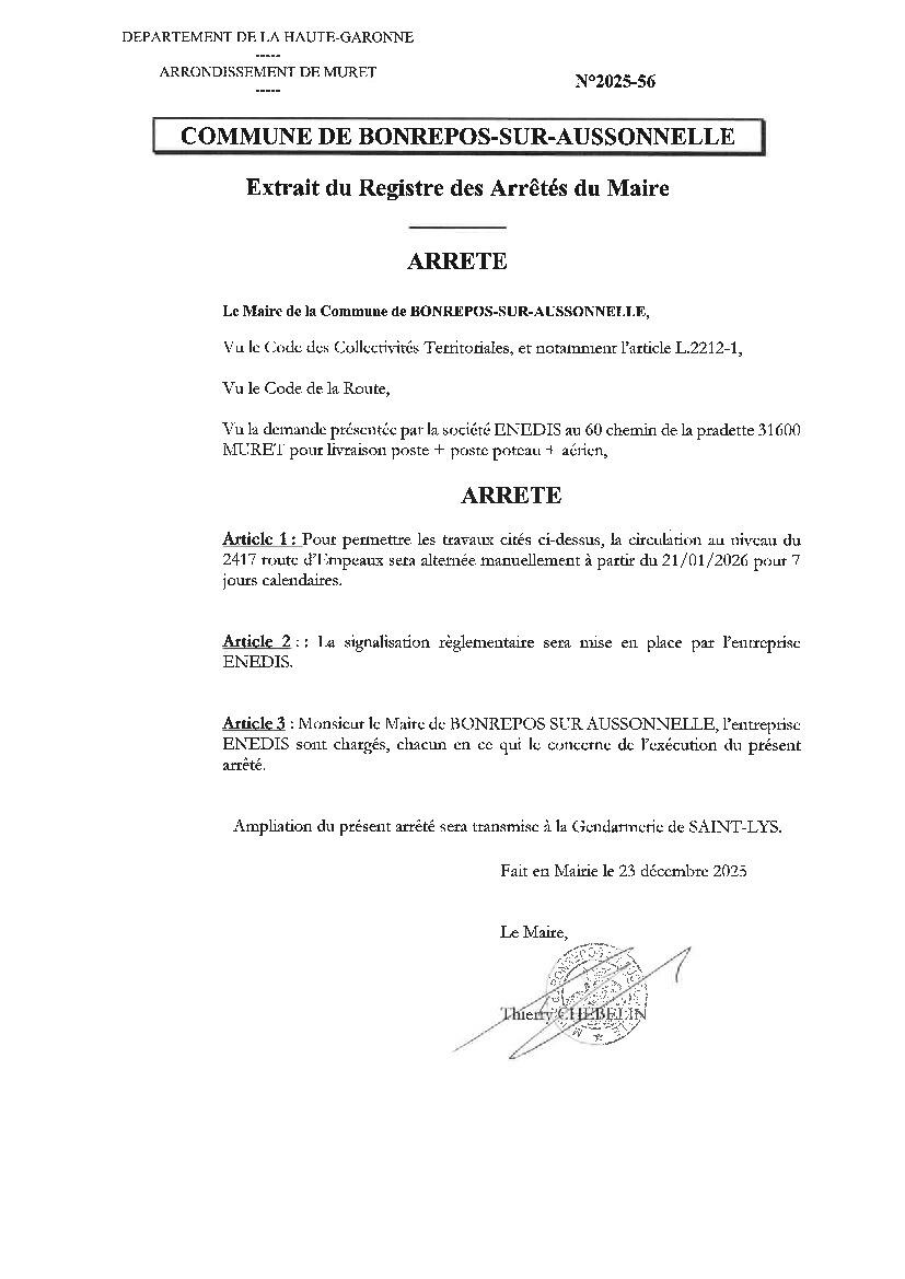 Travaux route d'Empeaux du 21 au 28 janvier