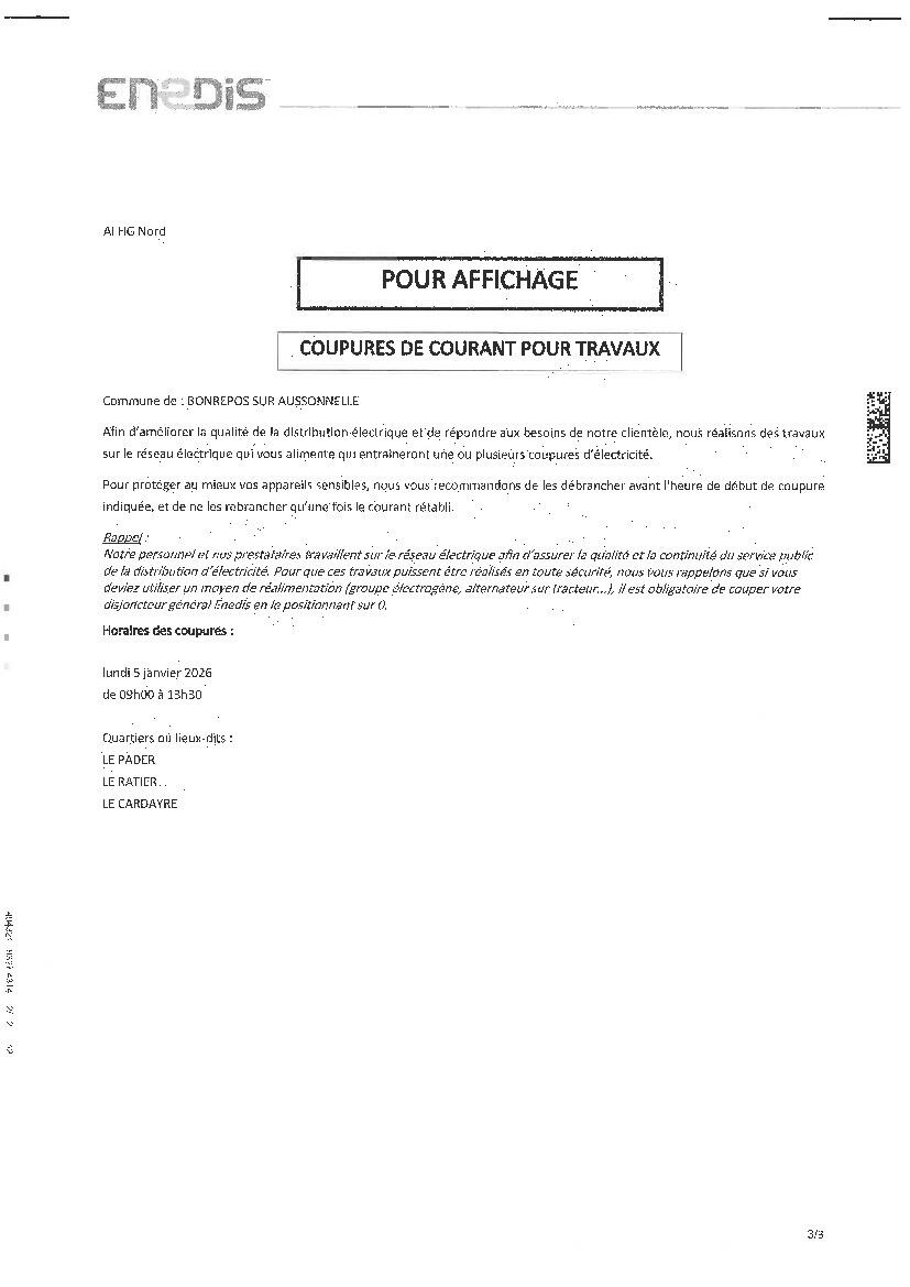 Coupure(s) d'électricité le 5 janvier 2026