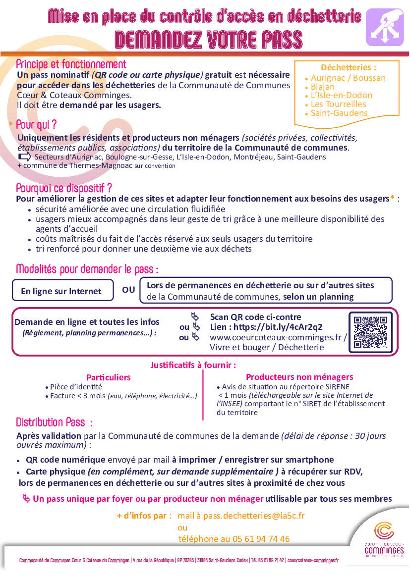 Calendrier Pass d'accès déchetteries 1er trimestre 2026