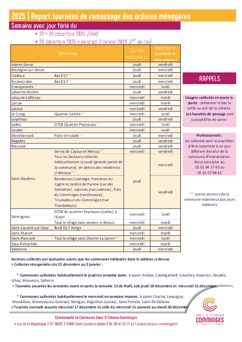 Your town hall / News / Report collectes des ordures ménagères les 25/12 et 01/01/26