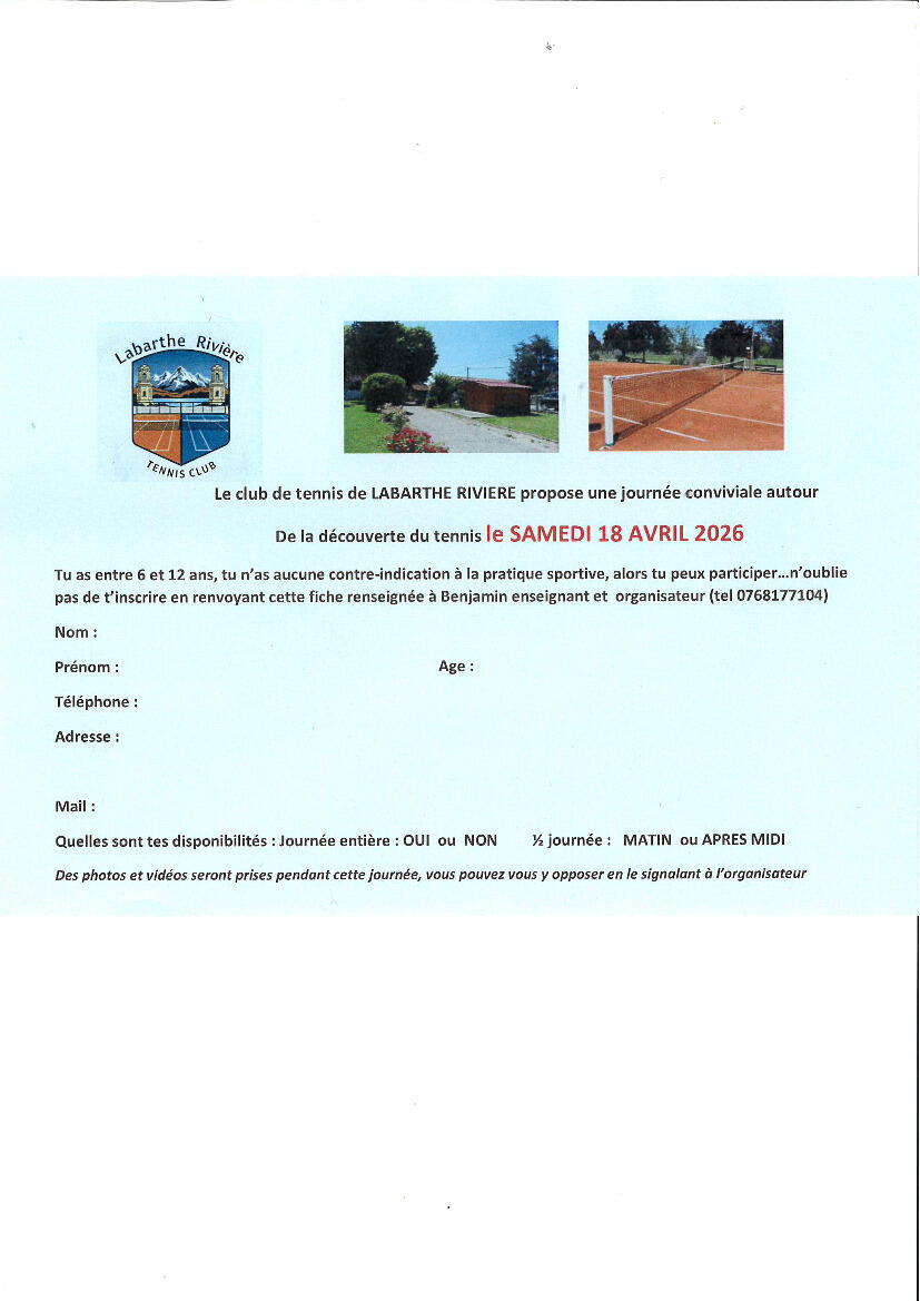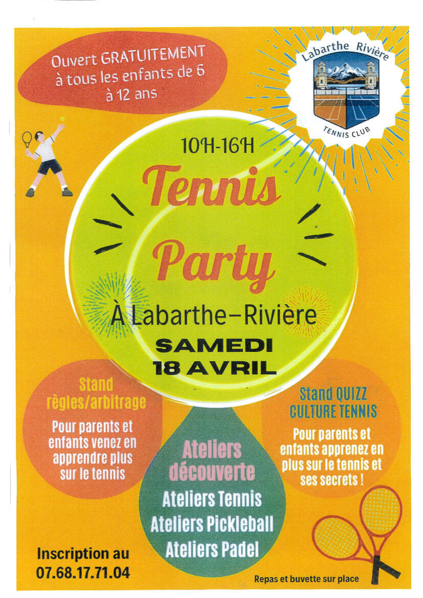 Le club de tennis de Labarthe-Riviere vous donne rendez-vous le samedi 18 avril de 10h à 16h !