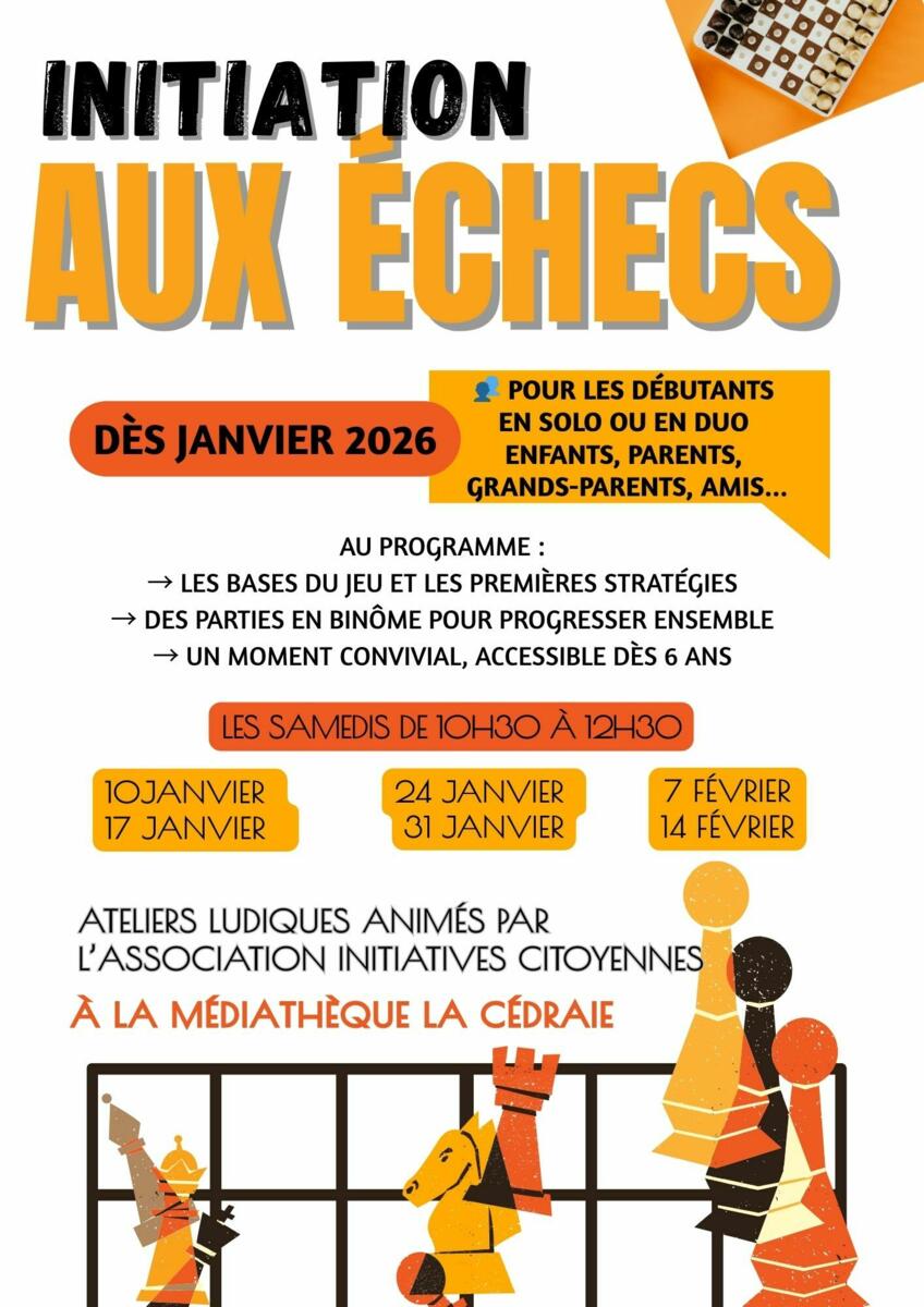 Dernière session d’initiation aux échecs de ce mois ♟️. Ne manquez pas cette opportunité de perfectionner vos compétences ! Adultes/Enfants (dès 6 ans)