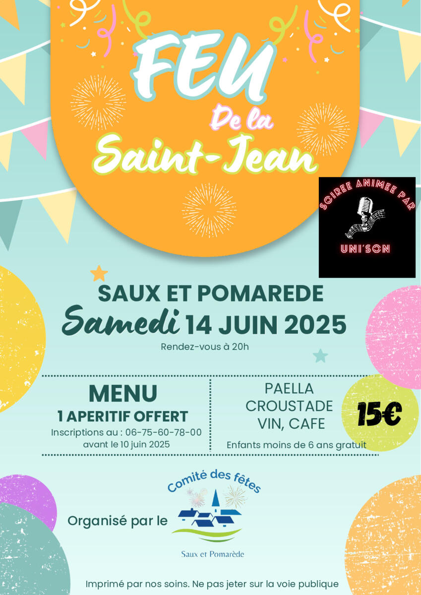 Feu de la Saint-Jean samedi 14 juin. Voir flyer.