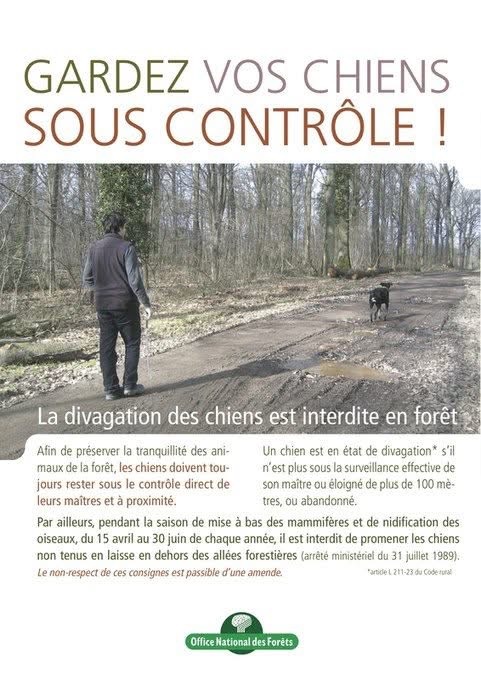 A partir d’aujourd’hui et jusqu’au 30 juin 2025, dans les bois et forêts, conformément à l'Arrêté du 16 mars 1955 relatif à l'interdiction de la divagation des chiens, il est interdit de promener des chiens non tenus en laisse en dehors des allées forestières.