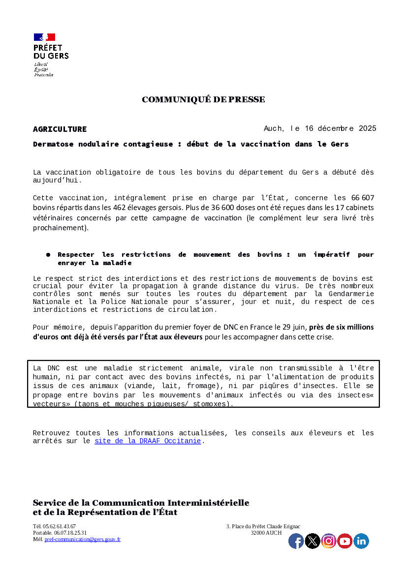 Dermatose nodulaire contagieuse : début de la vaccination dans le Gers