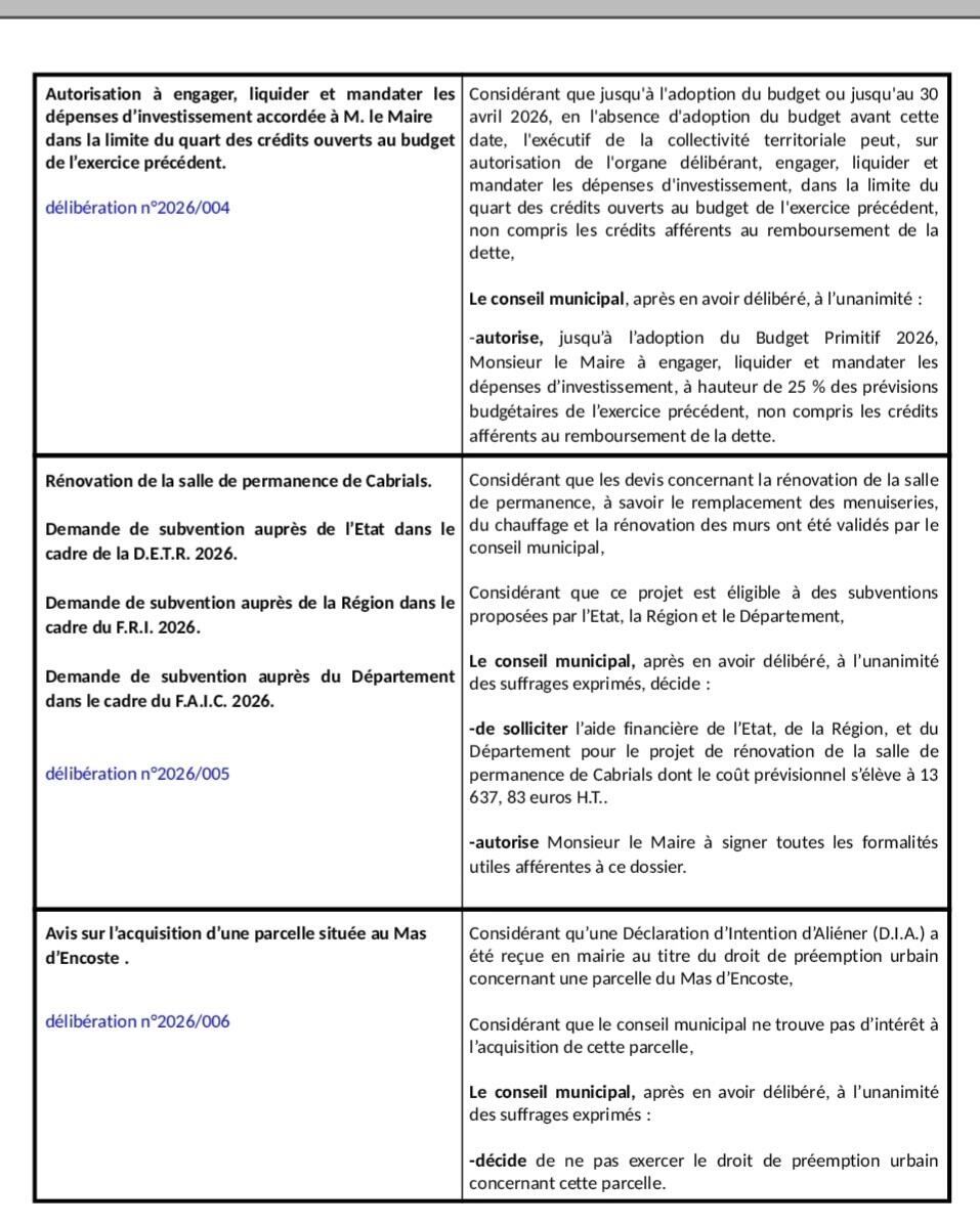 Compte rendu du Conseil Municipal d'Aumelas du 26/01/26