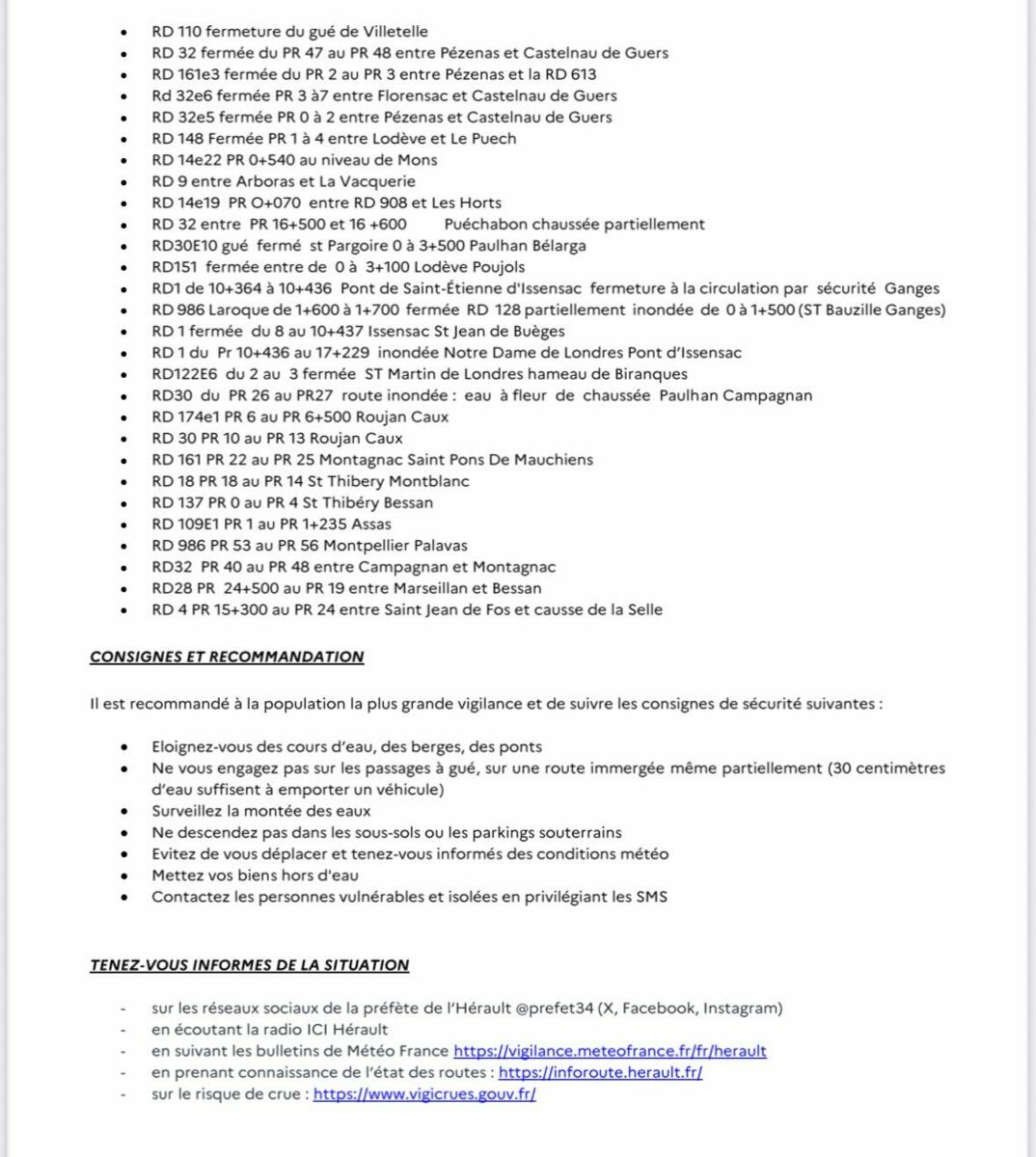 INFO PREFET - METEO VIGILANCE ROUTES FERMEES