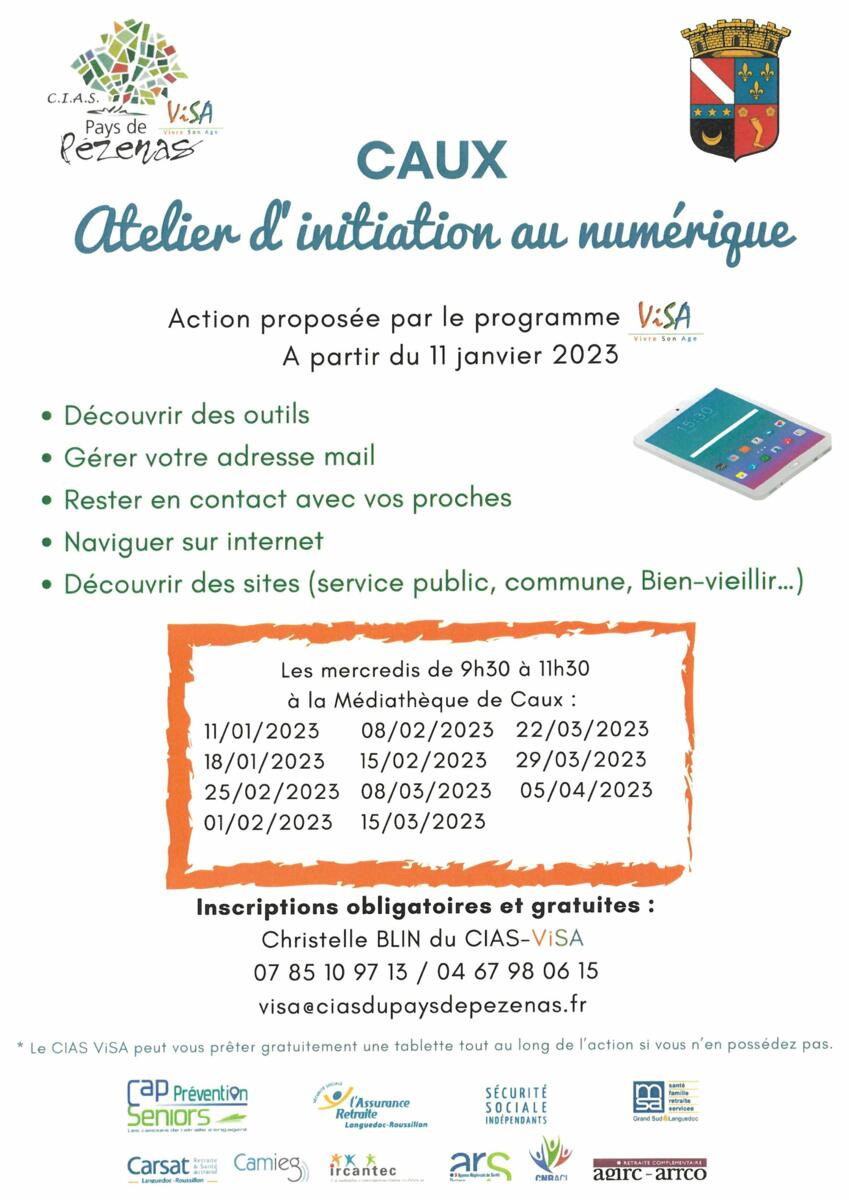 Le Centre Intercommunal d’Action Sociale (CIAS) du Pays de Pézenas propose des ateliers d'initiation au numérique tous les mercredis de 9h30 à 11h30 à la médiathèque de Caux (rue Jules Ferry).