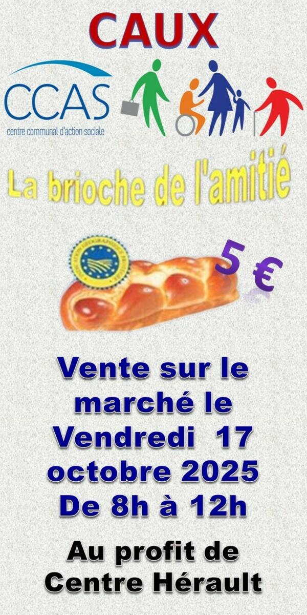 Les membres du CCAS seront présents sur le marché du vendredi le 17 octobre pour vous proposer des brioches au prix de 5 €.