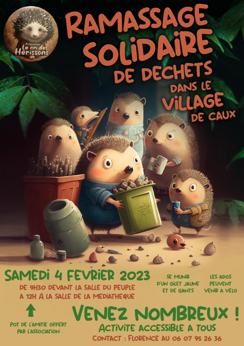 Organisation : L'association "Le cri des hérissons" en collaboration avec les écoles de Caux, la municipalité, le SICTOM et l'agglomération Hérault-Méditerranée.