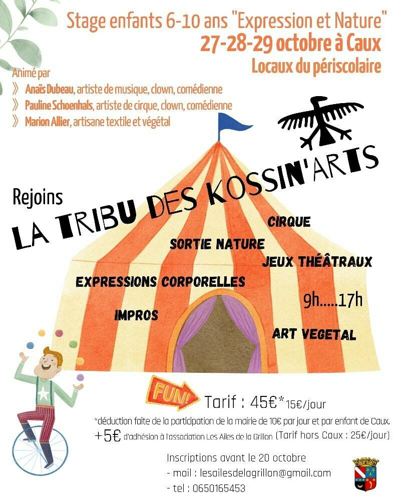 L'association "Les Ailes de La Grillon" est heureuse de vous partager les informations sur le prochain stage "Expression et Nature" qu'elle organise pour les enfants de 6 à 10 ans les 27, 28 et 29 octobre à Caux, dans les locaux du périscolaire (avenue de Fontès).