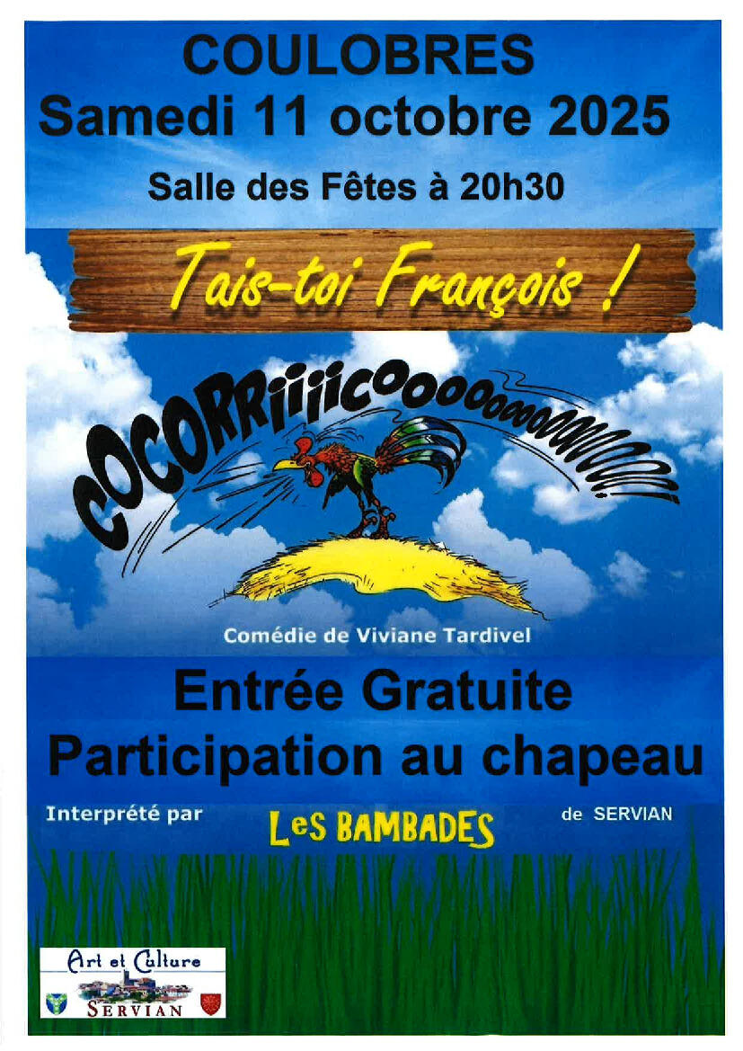 Le samedi 11 octobre 2025 à 20h30, "LES BAMBADES" se mettent en scène dans une pièce de théâtre "Tais-toi François!"