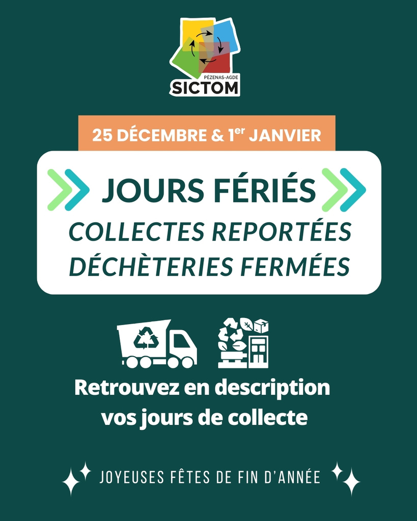 👉 les 24 et 31 décembre, les déchèteries fermeront exceptionnellement à 12h