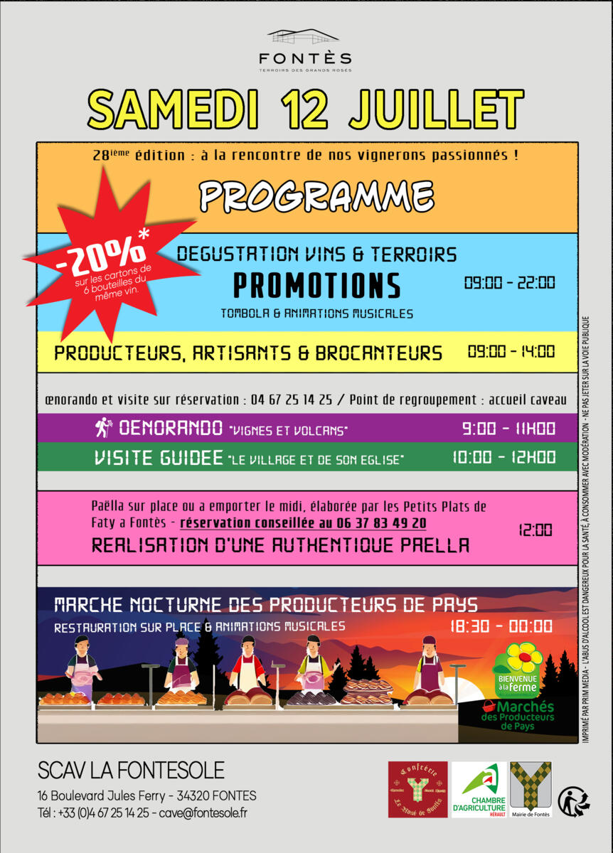 La 28ème édition de la fête des vignerons aura lieu samedi 12 juillet, sur le parking de la cave coopérative la Fontésole.