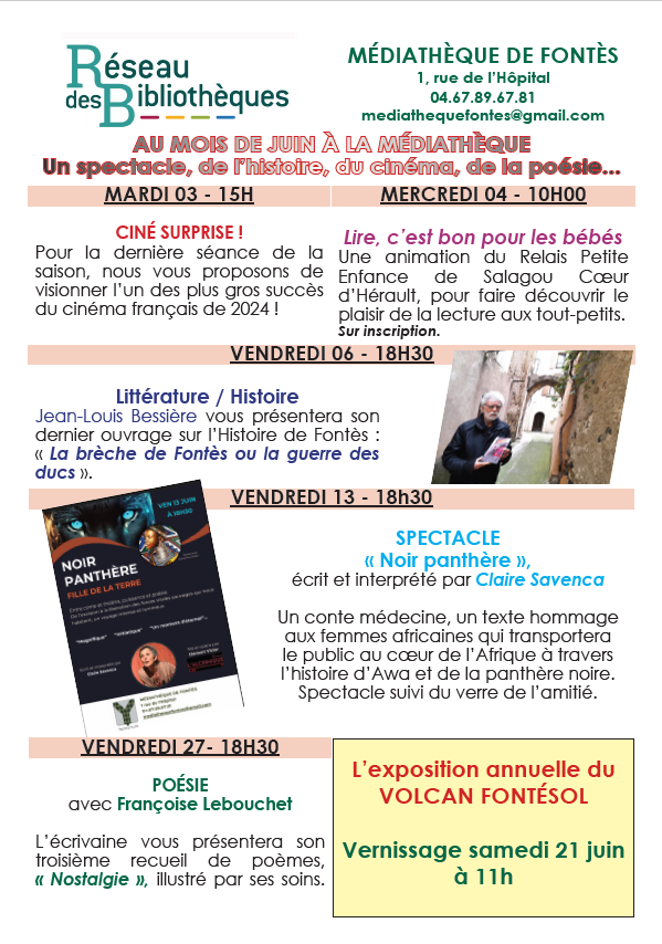 Your town hall / News / Programme du mois de juin à la médiathèque