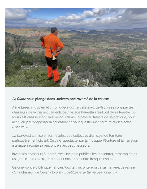 Your town hall / News / Spectacle "La Diane, mon voisin est un chasseur"