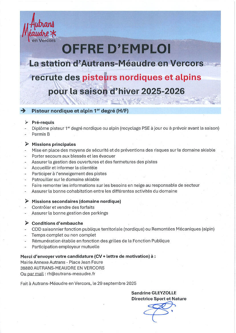 LA STATION RECRUTE POUR LA SAISON HIVER 25-26