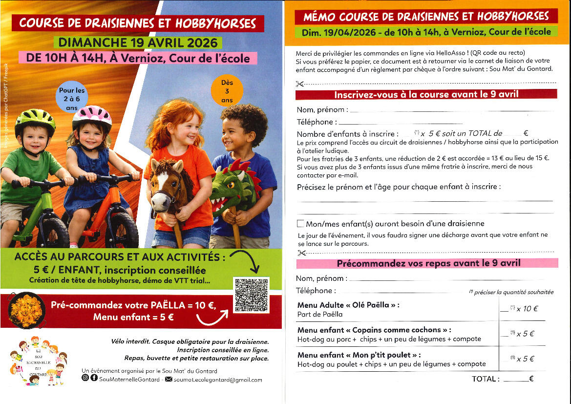 Your town hall / News / 🐴 COURSE DE DRAISIENNES ET HOBBYHORSES -19 Avril 2026 🐴