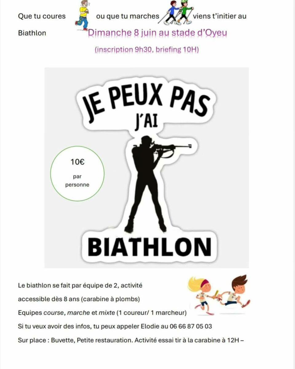 Le Comité des Fêtes d'Oyeu organise son Biathlon annuel ce dimanche 8 juin à partir de 9h30.