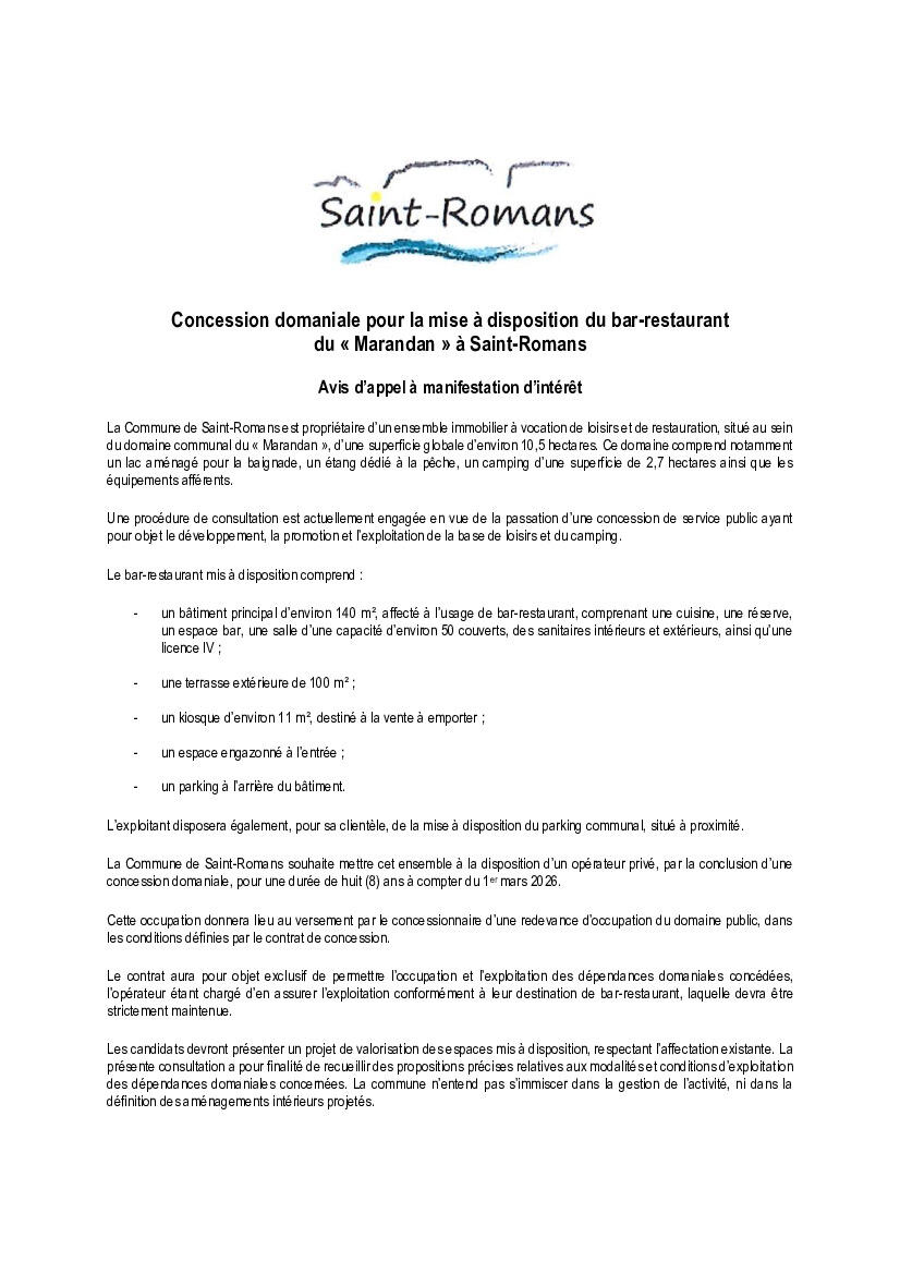 Bar/Restaurant le Marandan - Appel à manifestation d'intérêt