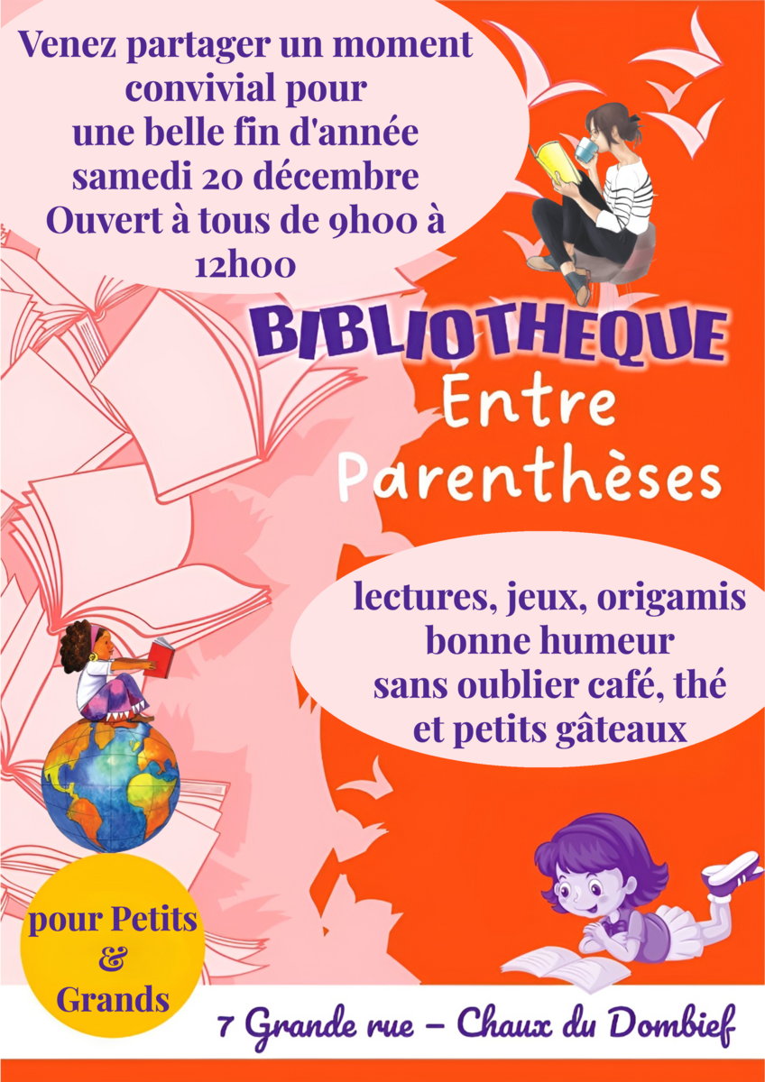 RDV convivial à la Bibliothèque samedi 20 déc de 9h-12h