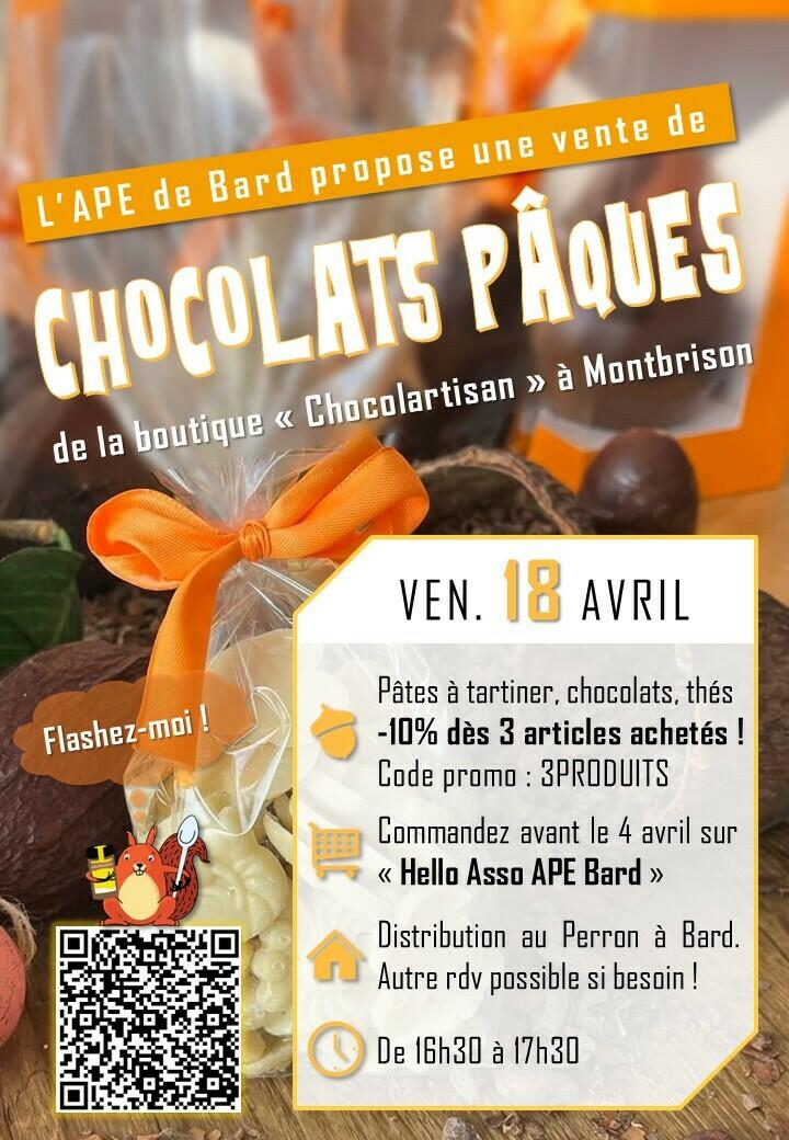 Vente chocolats de Pâques, pâte à tartiner et thés/tisanes