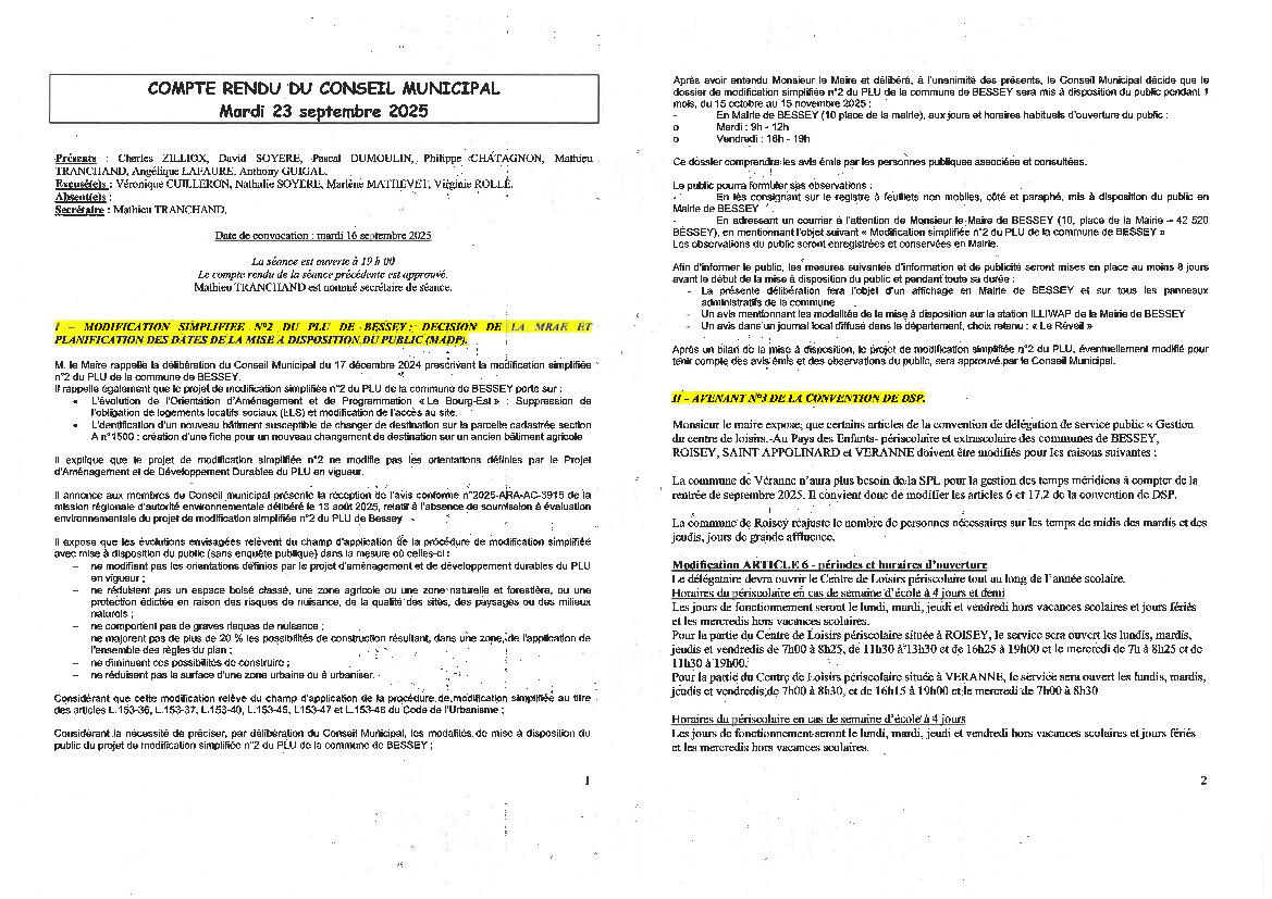 Mairie de BESSEY - Compte Rendu Conseil Municipal