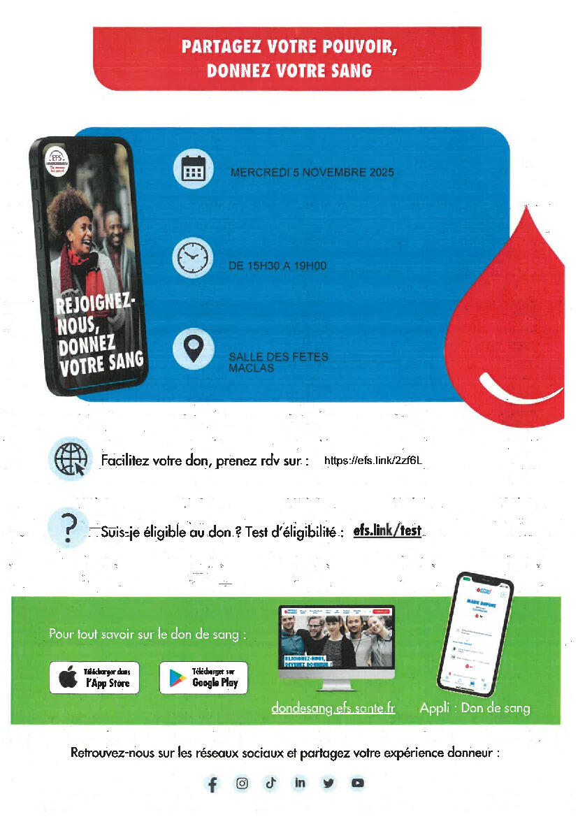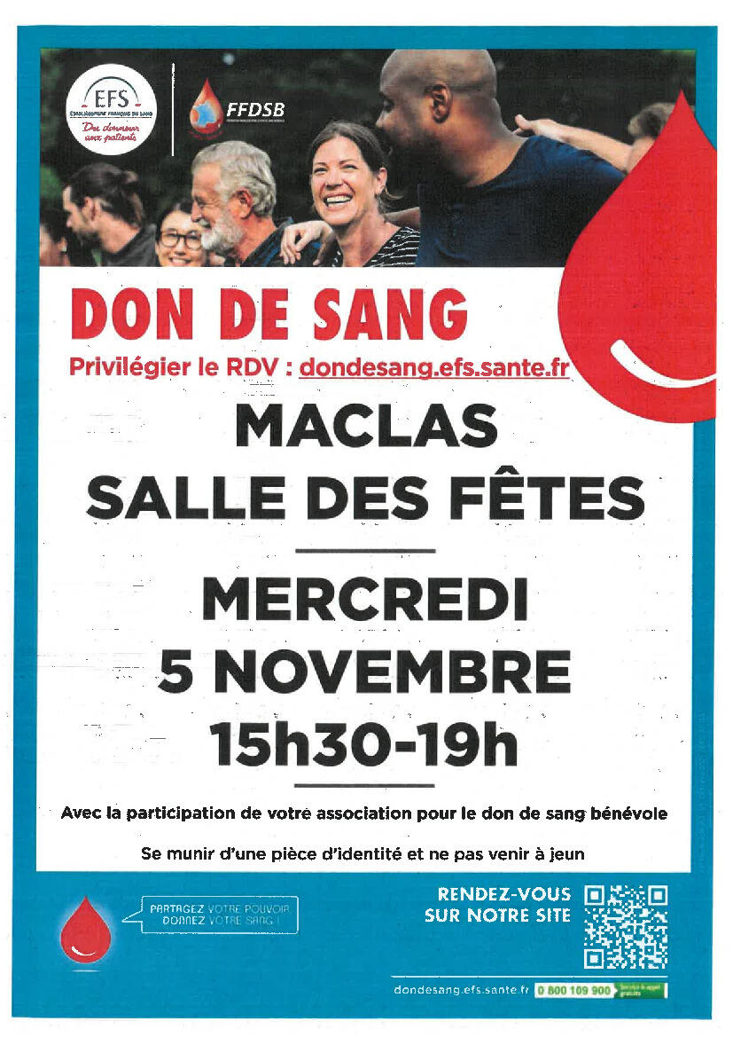 Don De Sang : Collecte du 5 novembre à Maclas