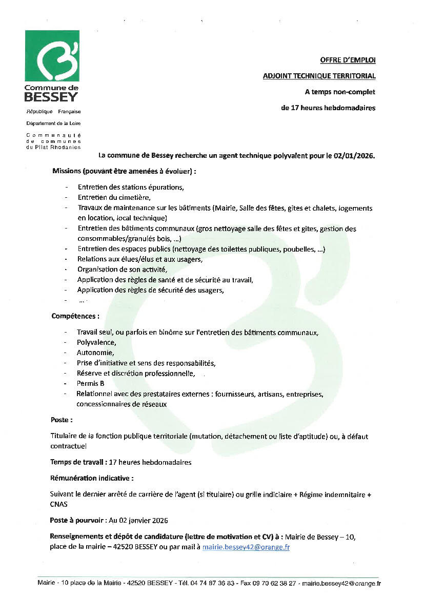 La mairie de BESSEY recrute