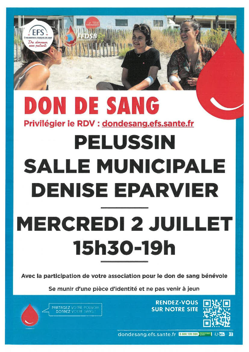 Don De Sang : Collecte de l'EFS à Pélussin le 2 juillet