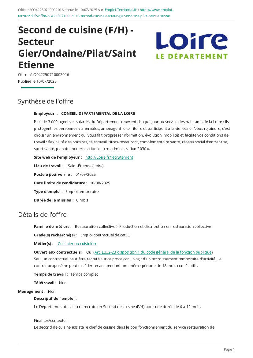 👨🍳📢 OFFRES D’EMPLOI : restauration collective collège