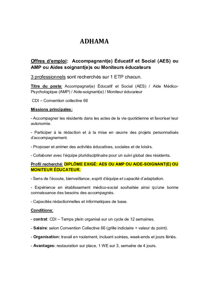 L'ADHAMA recrute à Bussières